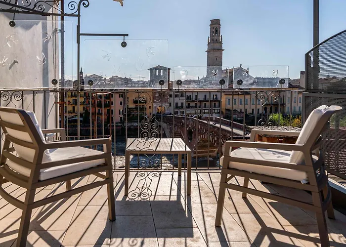 Offrant une vue sur la ville, spacieux| Appartement Residenza Veronica A Ponte Pietra à Vérone est situé dans le quartier "Città Antica" à Vérone, à quelques minutes du théâtre romain de Vérone. Doté d'une terrasse avec vue sur le fleuve, le domicile de 90 m^2 se trouve assez proche du Pont de pierre.